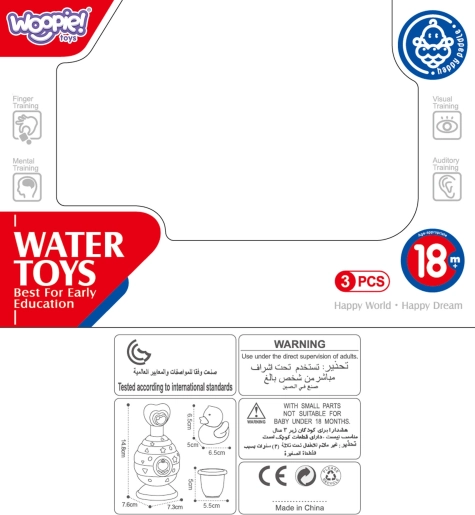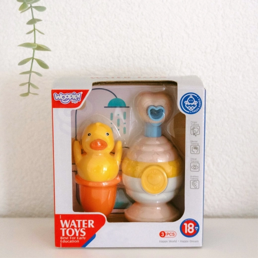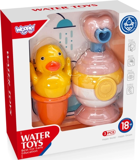 Set kopalniških igrač Woopie je zasnovan, da prinese zabavo in razvoj med kopanjem. Račka, ki plava na vodi, navdihuje ustvarjalno igro, skodelica za prelivanje pa otrokom omogoča opazovanje toka vode. Dozator mila običajno milo spremeni v nežno, puhasto peno, zaradi česar je umivanje zabavnejše in temeljitejše.