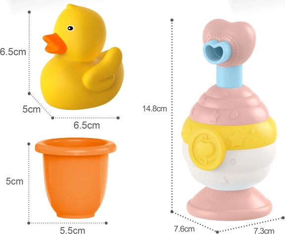 Račka udobno plava na vodi in spodbuja otroke k aktivni igri. Ta plastična igrača je idealna kombinacija zabave in čutnega doživljanja.