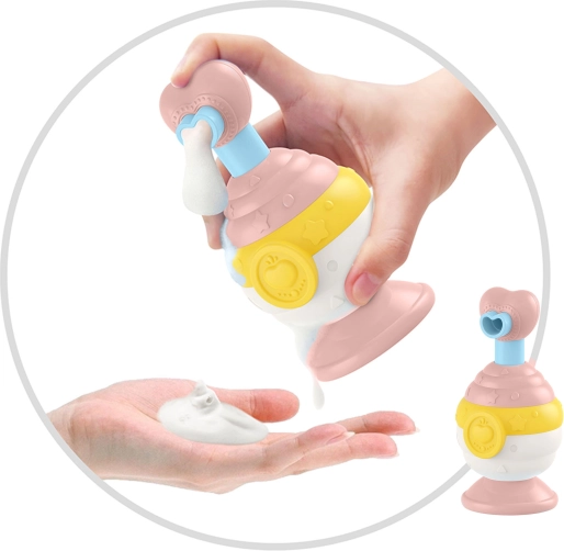 Dozator lahko običajno milo spremeni v nežno peno, kar prinaša veselje pri umivanju in več zabave med kopanjem.