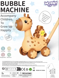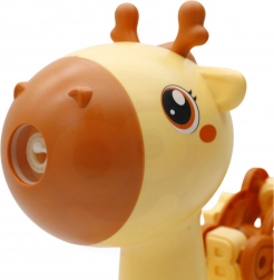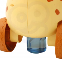 Iščete igračo, ki bo otroke spravila v gibanje in jih hkrati navdušila? WOOPIE žirafa 2v1 združuje stroj za mehurčke s potiskalnim hojnikom. Dovolj je, da v posodico nalijete raztopino, vključite in opazujete, kako barviti mehurčki letijo daleč zahvaljujoč integriranemu ventilatorju, medtem ko žirafa predvaja melodijo in utripa z lučkami.
