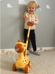 Dolga vodilna palica omogoča udobno vodenje ter podpira grobo motoriko in koordinacijo. 4 kolesa zagotavljajo stabilnost in tekočo vožnjo po različnih površinah. Priloženi so tudi pripenjajoči elementi za ustvarjalno igro. Idealno za dvorišče, park in otroško sobo.