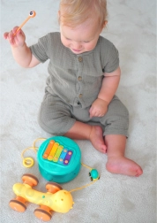 Igrača naravno vodi k odkrivanju glasbe, vzrokov in posledic ter podpira kreativno igro in družinsko interakcijo. Odporna izdelava prenese otroško rabo in hitro postane priljubljen spremljevalec za igro doma in na poti.