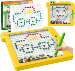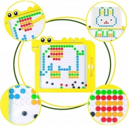 Otroci sestavljajo barvite slike in vzorce po predlogah ali lastni domišljiji. Magnetni gumbi trdno držijo, delo z njimi pa je preprosto tudi za najmlajše.