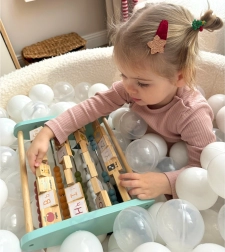 - Narejeno iz kakovostnega lesa: Uporaba varnih in netoksičnih barv zagotavlja, da je igrača ekološka in varna za otroke.