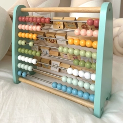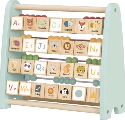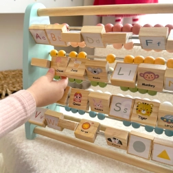 Lesena izobraževalna abeceda in računalo ponuja edinstveno kombinacijo zabave in izobraževanja za otroke. Na eni strani se otroci učijo klasičnega štetja na barvnih biserih, ki podpirajo osnovne matematične spretnosti. Druga stran nudi abecedno ploščo z vrtljivimi bloki, ki vsebujejo velike in male črke z dodatnimi slikami, zaradi katerih je učenje abecede igriva dejavnost, polna zabave in angažiranosti.