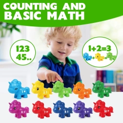 Vsak samorog ima številko, ki pomaga otrokom pri učenju štetja med igro.