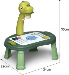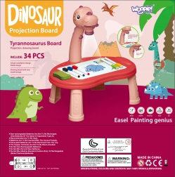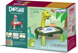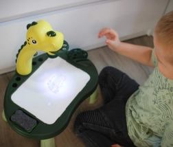 Projektor v obliki dinozavra projicira slike neposredno na mizo, tako da jih lahko otroci zlahka prerisujejo. Na voljo je 24 predlog na 3 diskih za neskončno ustvarjanje.