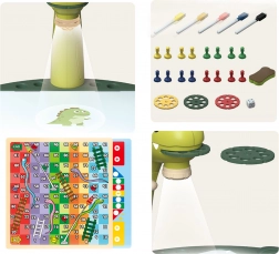 Poleg ustvarjanja bodo otroke zabavale tudi 2 klasični igri – Človek, ne jezi se! in Kače in lestve. Priložene so figurice in kocka za popolno družinsko zabavo.