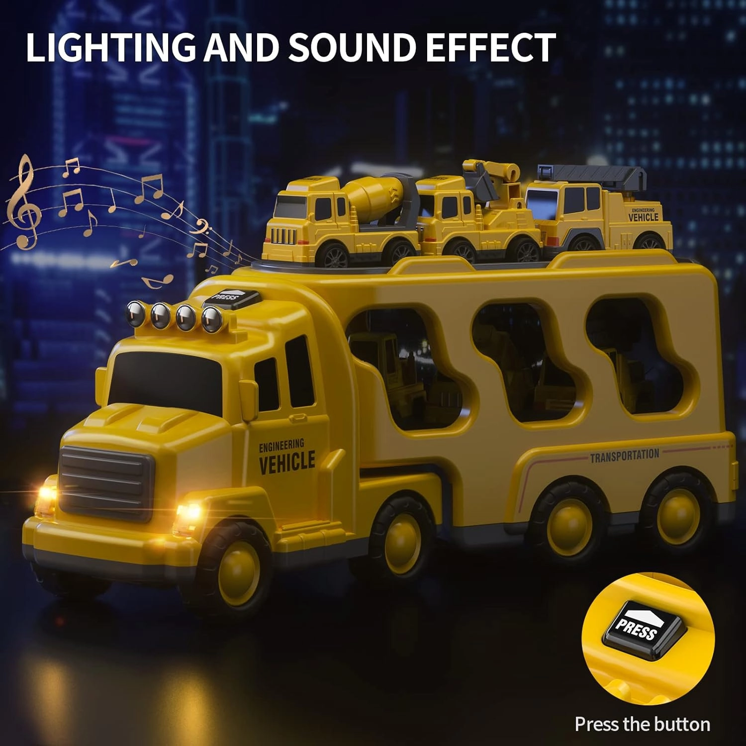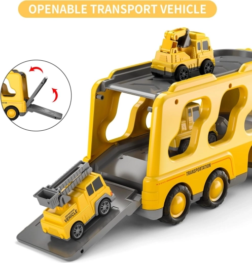 - 5-delni set: velik vlečni tovornjak + 4 gradbena vozila