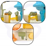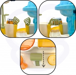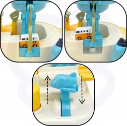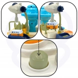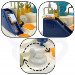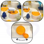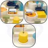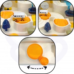 Ročice, gumbi in vrtljiva stikala oživijo celotno progo. Otrok povsem ročno vadi fino motoriko, koordinacijo in osredotočenost.