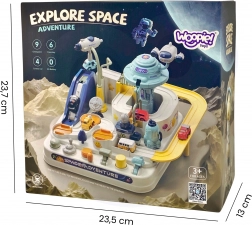 Brez potrebe po baterijah in z bogatim naborom elementov ta proga podpira samostojnost in osredotočenost. Štirje različni avtomobilčki ter številni interaktivni elementi navdihujejo ustvarjanje lastnih zgodb in scenarijev iz vesoljskega sveta.