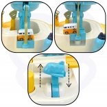 Odkrijte neskončno vesolje domišljije z interaktivno avtomobilsko progo Woopie. Otroci upravljajo gibanje vozil z mehanskimi ročicami, gumbi in stikali – brez baterij. Zabavna vesoljska baza z izstreljevalnikom, premičnimi platformami in dvigalom razvija fino motoriko, logično razmišljanje in koordinacijo oko–roka.