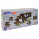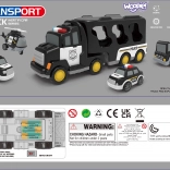 Velik policijski set znamke Woopie prinaša 5v1 zabavo: ogromen transportni vlačilec in štiri policijska vozila (oklepnik, cisterna z vodnim topom, helikopter, radiovozilo). Dovolj je pritisniti gumb na kabini in sprožijo se utripajoče luči in realistične sirene. Trpežna zasnova, interaktivni učinki in premični elementi spodbujajo ustvarjalnost in domišljijo otrok že od 3. leta dalje.