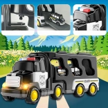 Velik transportni vlačilec, oklepnik, cisterna z vodnim topom, helikopter in radiovozilo – kombinirajte in ustvarjajte lastne policijske misije.