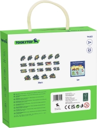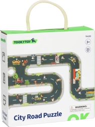 Sestavite svoje mesto in dirkalni krog s sestavljanko TOOKY TOY. Paket vsebuje 21 kosov (cestno sestavljanko in knjižico s predlogi tras), s katerimi ustvarite različne različice cest s križišči, krožišči in prometnimi elementi. Po sestavi nastane velika igralna površina do 82,5 × 82,5 cm, ki razvija fino motoriko, ustvarjalnost in domišljijo otrok od 3 let.