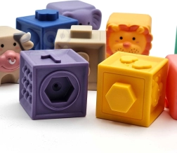 Vsak blok ponuja različne teksture, barve in zvoke za razvoj vidno-slušne koordinacije in fine motorike otroka.