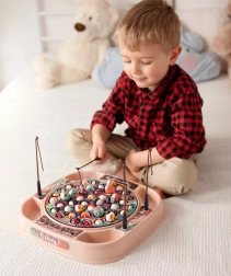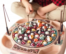 Priljubljena spretnostna igra ribolov v moderni izvedbi. Po vklopu se plošča z ribicami počasi vrti v ritmu glasbe in nekatere ribice se odpirajo – takrat je pravi čas, da jih ujamete s palico. Žive barve in dinamična igra takoj pritegneta pozornost otrok in spodbujata zdravo tekmovalnost.