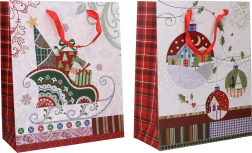 Ta kakovostna papirnata darilna vrečka z božičnim motivom olajša pakiranje daril in jim doda prazničen videz. Zaradi mer 26 × 32 × 12 cm je primerna za knjige, kozmetične komplete, sveče ali manjše škatle. Dovolj je, da darilo vstavite, in imate takoj pripravljeno elegantno pakiranje.