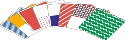 - Stojalo za karte, 4 predloge likov, 18 kart z vzorci, knjižica z nalogami