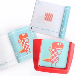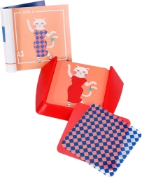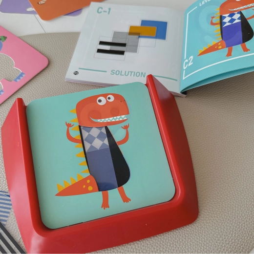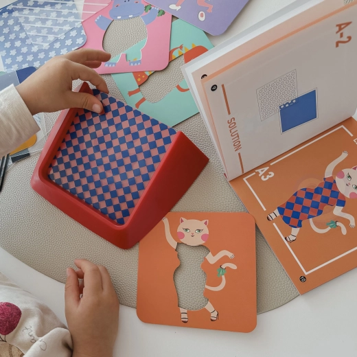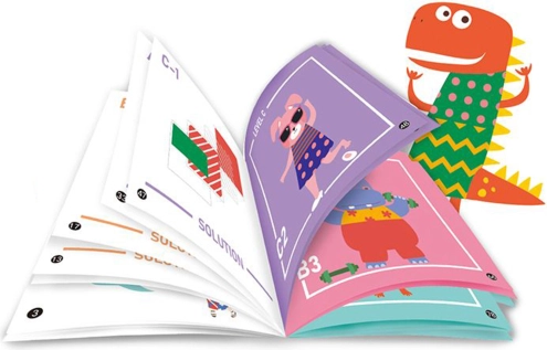 Del kompleta so stabilno stojalo, štiri predloge likov ter pestra izbira kart z vzorci in knjižica z nalogami in rešitvami. Igra odlično razvija prostorsko zaznavanje, fino motoriko in vizualno percepcijo oblik, barv in vzorcev. Odlično kot izobraževalno darilo za predšolske otroke.