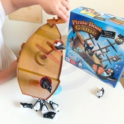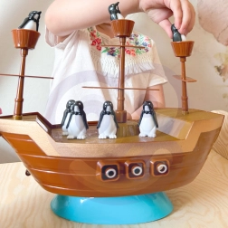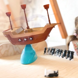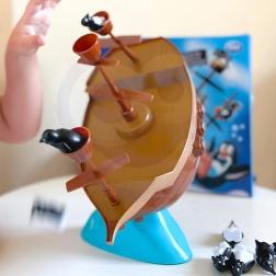 Predstavljamo vam zabavno in vznemirljivo igro Woopie Piratska ladja pingvinov, ki je primerna za otroke od 3 let. S pomočjo te igre otroci razvijajo ročne veščine, pa tudi logično in strateško mišljenje.