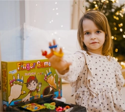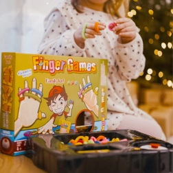 WOOPIE FINGER GAMES je dinamična in nalezljiva igra, v kateri otroci in odrasli trenirajo spretnost prstov, odzivnost in načrtovanje. Vzemi karto z vzorcem in čim hitreje natakni barvne elastike na prste natančno po navodilu.
