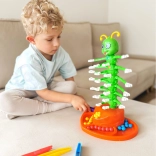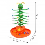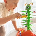 Otroci uporabljajo pincete za natančno polaganje kroglic na premikajoče se ročice gosenice, s čimer naravno razvijajo koordinacijo oko–roka in potrpežljivost.
