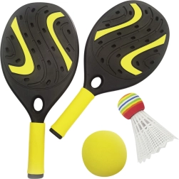 S tem univerzalnim kompletom loparjev WOOPIE boste na prostem uživali ob obilici gibanja in iger. Zahvaljujoč mehki penasti žogici in barviti košarici je igra varna in zabavna za mlajše otroke ter za vso družino. Lahka konstrukcija in udoben oprijem omogočata zanesljivo držanje in enostavno upravljanje.