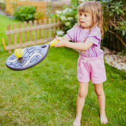 - Varno za otroke: mehka penasta žogica, lahki plastični loparji