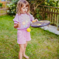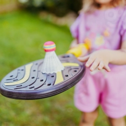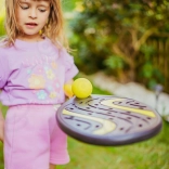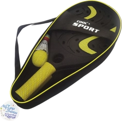 Vse shranite v trpežen etui z zadrgo, ki opremo ščiti in omogoča, da jo vzamete kamor koli – na vrt, igrišče ali k morju. Komplet pomaga izboljševati koordinacijo oko–roka, odzivnost in naravno motivira k gibanju na svežem zraku.
