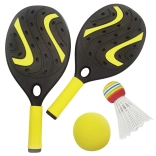 Lahek in zabaven komplet loparjev WOOPIE za igro na prostem – na plaži ali na vrtu. Vsebuje 2 vzdržljiva loparja, mehko penasto žogico in košarico, zato lahko igrate različne igre po želji. Priloženo je tudi praktično etui z zadrgo za udobno prenašanje. Odlična izbira za aktivno preživljanje časa, razvoj koordinacije in grobe motorike otrok od 3 let dalje.