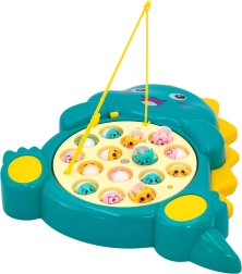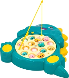 Stavite na hitrost, pozornost in natančnost? Zeleni dinozaver skriva vrteči se ribnik, poln barvitih ribic, ki se odpirajo in zapirajo. Vaša naloga je s palico ujeti čim več ribic, preden se krog konča – zabaven izziv za male in velike ribiče.