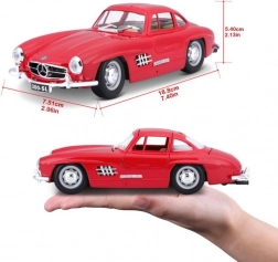 Doživite čar zgodovinske elegance s kovinskim modelom Mercedes Benz 300SL v rdeči izvedbi. Ta model v merilu 1:24 znamke Bburago ponuja verodostojne podrobnosti in natančno izdelavo.