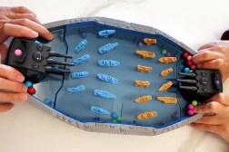 Barvite ladje in podmornice na igralni plošči ustvarjajo realistično bitko, ki otroke pritegne že od prvega strela.