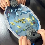Skriti katapulti pod modro »vodno« površino dodajo igri živahnost ter zahtevajo natančno merjenje in pravočasno sprožitev.