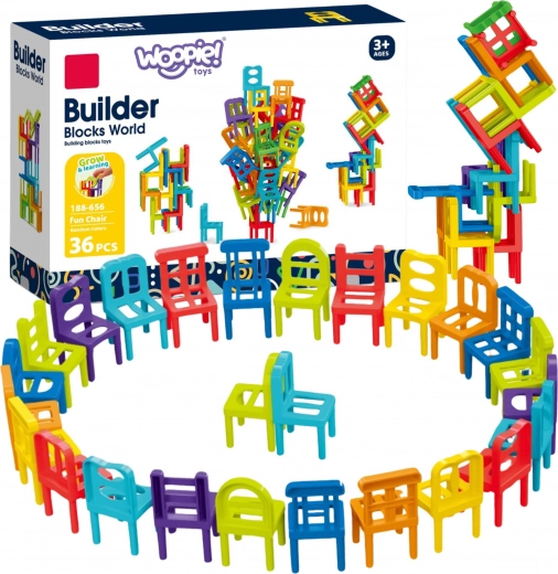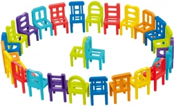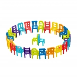 Zabaven komplet vsebuje 36 stolov različnih oblik in sedmih barv: modra, svetlo modra, oranžna, rumena, zelena, vijolična in rdeča.