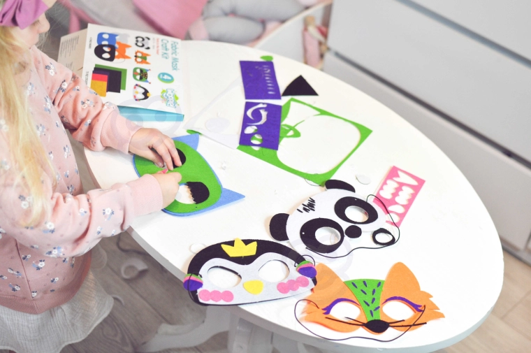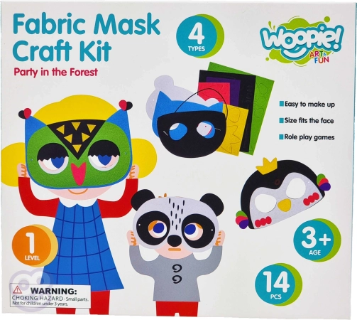 Ta komplet Woopie ART&FUN vsebuje vse potrebne materiale za izdelavo štirih barvitih mask. Otroci lahko izrazijo svojo ustvarjalnost in se zabavajo sami ali s prijatelji. Odličen je za razvoj fine motorike, t. i. »male motorike«. Ko so maske končane, se lahko vživijo v različne vloge in se zabavajo pri igri.