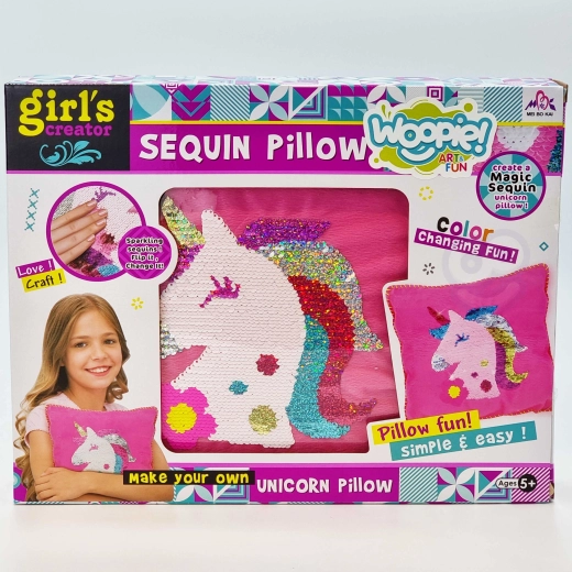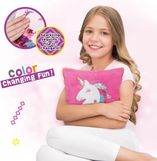 Odkrijte svet mode in ustvarjanja z ustvarjalnim setom Woopie ART&FUN. Preprosto šivanje zmorejo tudi začetniki – potrebujete le malo domišljije in potrpežljivosti. Zahvaljujoč dvosmernim bleščicam bo vaša samorogova blazina zasijala, ob potegu z roko pa čarobno spremenila barvo. Materiali so prijetni na dotik in brez ostrih robov.
