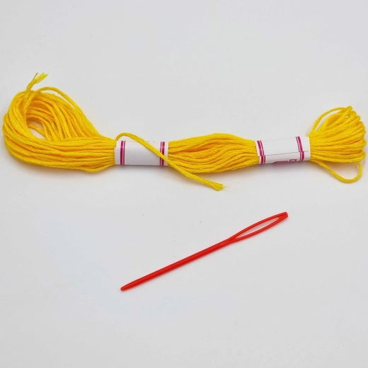 Vsebina paketa: prevleka za blazino, polnilo/blazina, igla, nit, bleščice.