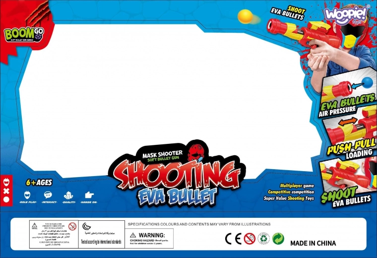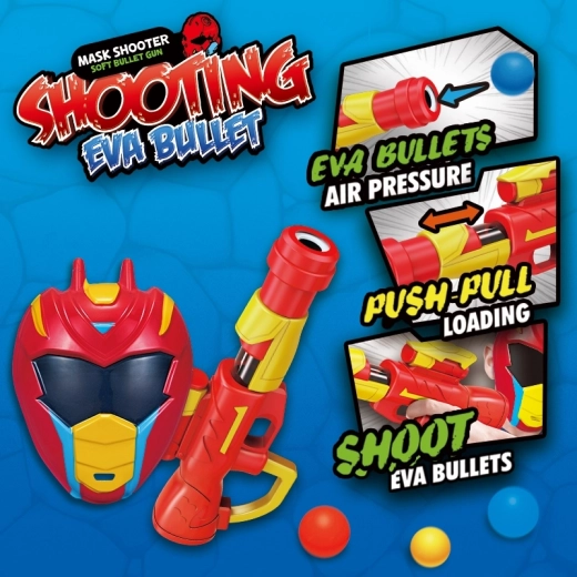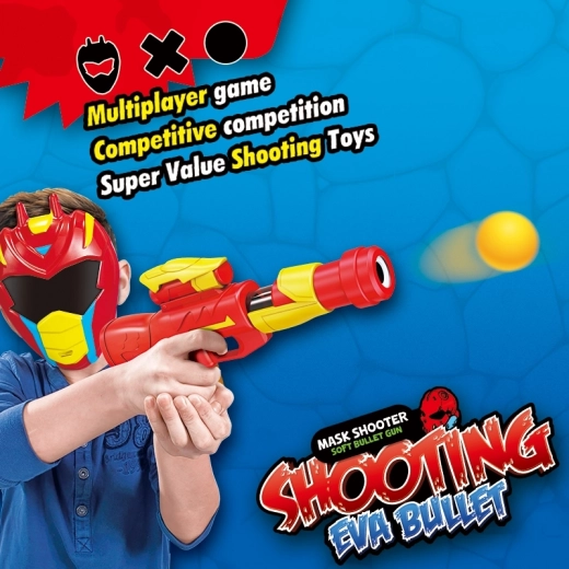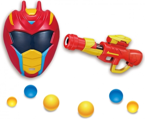 S tem kompletom bodo otroci uživali v akcijski, a hkrati varni zabavi. Vzmetni mehanizem zagotavlja zanesljivo izstreljevanje penastih kroglic brez baterij, upravljanje je preprosto in ergonomsko za majhne roke. Slogovna maska z elastičnim trakom doda igri pridih in spodbuja domišljijo.