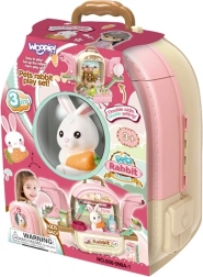 Zajček na kmetiji 3v1 znamke Woopie povezuje zabavo in izobraževanje. Otroci lahko gojijo zelenjavo, skrbijo za svoje plišaste ljubljenčke in se učijo, kako pomembna je skrb za živali. Ta zabavni komplet vsebuje: