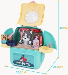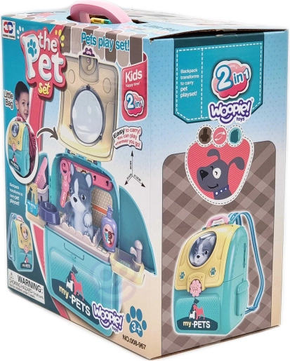Predstavljamo prenosni lepotni salon za otroke Woopie, ki bo vašemu otroku zagotovil ure zabave in interakcije z njegovim ljubljenčkom. Kompaktna zasnova: Omogoča enostavno prenašanje kamor koli, na igrišče ali v vrtec. Nahrbtnik ima priročen ročaj in posebno zapiralo za maksimalno varnost igrače kužka.