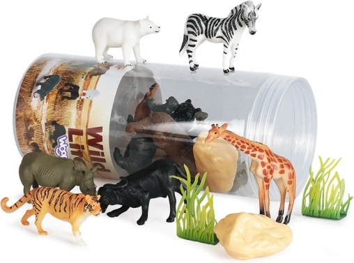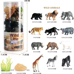 - Celovit set: 12 figur divjih živali + 2 rastlini + 2 skali (skupaj 16 delov)