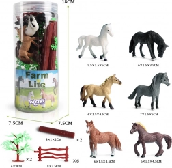 Odkrijte zabaven set figur blagovne znamke Woopie, ki bo razveselil vsakega malega ljubitelja živali. Vključuje 6 realističnih konj, 2 drevesci, 6 delov ograje in 2 leseni hlodi. Figurice so podrobno izdelane, prinašajo izobraževalno vrednost ter spodbujajo domišljijo in ustvarjalnost pri igri.