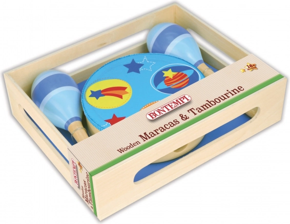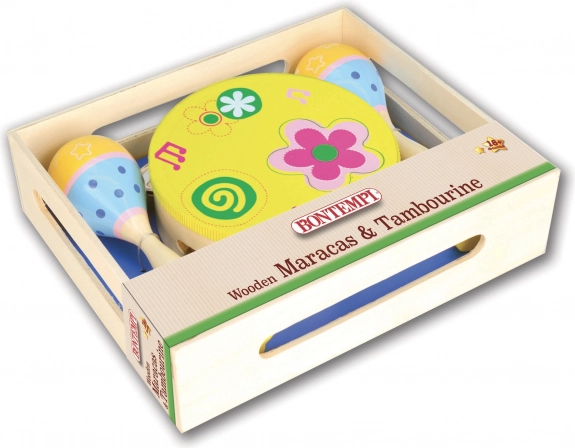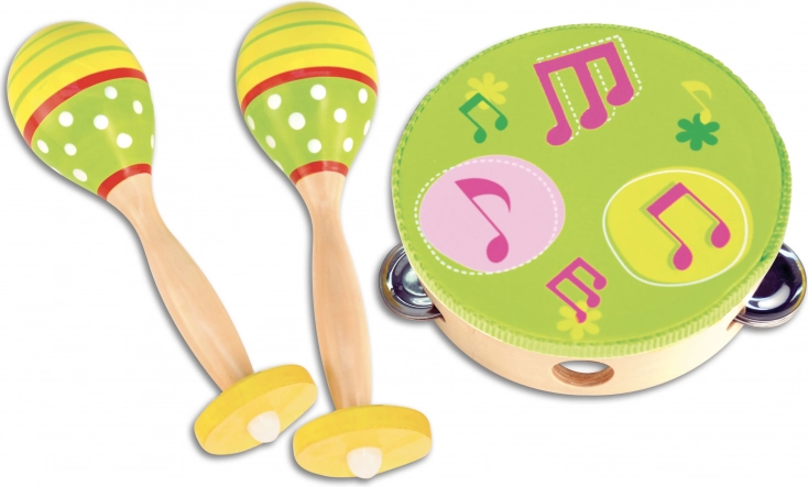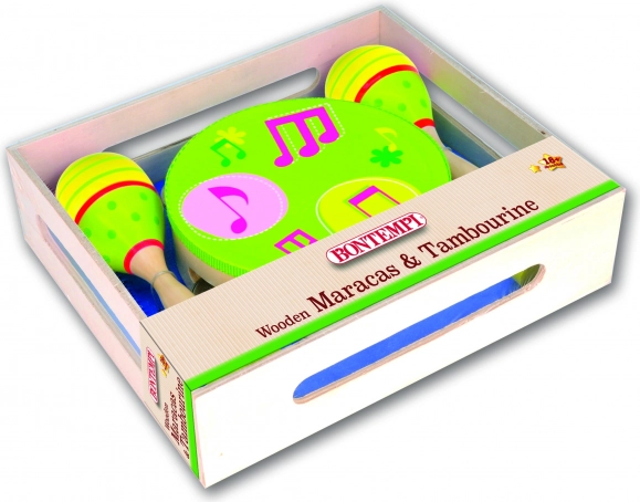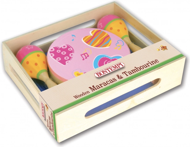 Glasbeni komplet za male glasbenike prinaša zabavo, razvoj ritma in fine motorike. Vsebuje 2 leseni rumba krogli in tamburin z 8 čineli – idealno za prve glasbene poskuse in domače nastope.