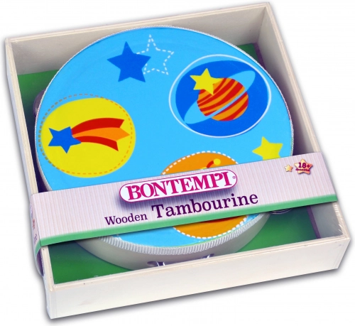 Lesena otroška tamburinica BONTEMPI 18 cm. Razvija ritem, sluh in motoriko. Vesel dizajn, primerna od 3 let. Odličen začetek v svet glasbe.