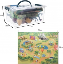 Ta celovit set blagovne znamke WOOPIE otroke od 3. leta popelje v fascinantno dobo dinozavrov. Realistično oblikovane figurice spodbujajo domišljijo, finomotoriko in učenje – otroci spoznajo imena vrst, njihov videz in način življenja. Filcna podloga z motivom parka ustvari privlačno igralno okolje.