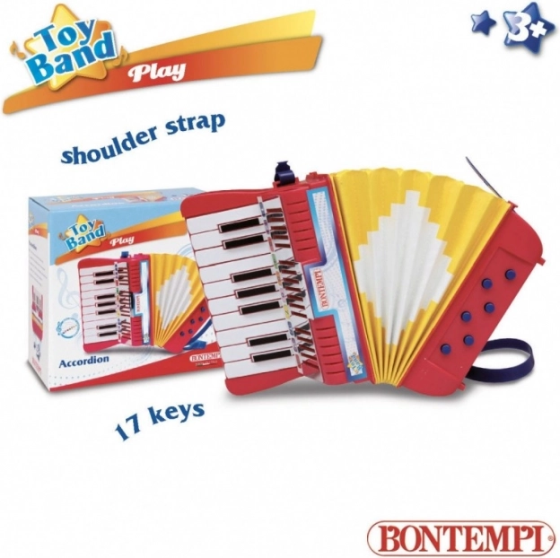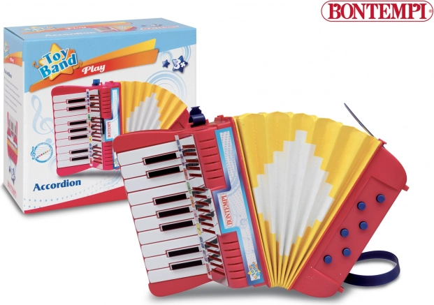 Odkrijte veselje do glasbe z otroško harmoniko BONTEMPI. To lahkotno glasbilo ima 17 tipk (C–E), 6 basovskih gumbov in udobne naramnice za enostaven oprijem. Odlična izbira za male začetnike, ki želijo razvijati ritem, posluh in motoriko.