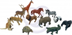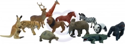 • 12 živali: lev, tiger, zebra, žirafa, slon, krokodil, panda, gorila, konj, jelen, kenguru, želva