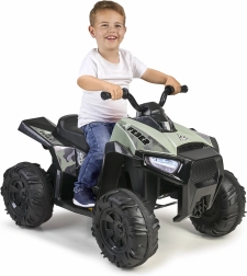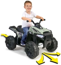 Čudovit otroški električni štirikolesnik španske znamke Feber. Kamuflažna barva mu daje terenski videz. Štirikolesnik je opremljen z velikimi, vzdržljivimi kolesi za boljši oprijem, vožnja pa je tiha in ne poškoduje tal.